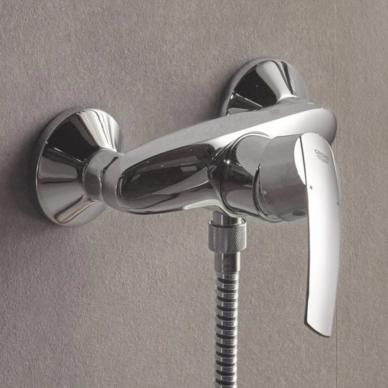 Bateria de dus Grohe Start QuickFix din colectia Start aduce un design modern si functionalitate de top. Finisajul sau crom lucios confera un aspect sofisticat si durabilitate, iar materialul din alama sanitara asigura o utilizare de lunga durata. Montarea pe perete este simpla si eficienta, iar parghia metalica ofera un control precis.