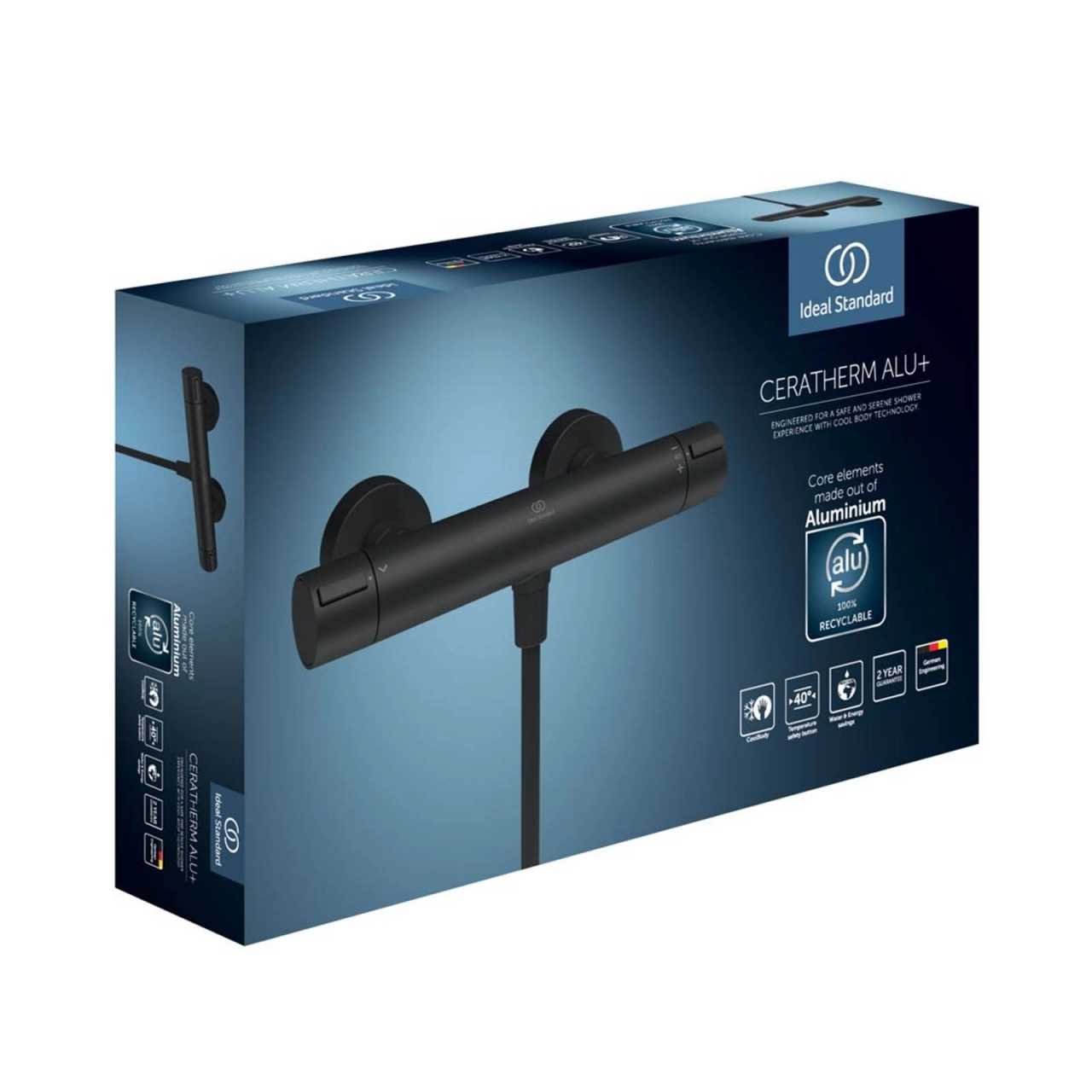 Bateria de dus Ideal Standard Alu+ termostatata negru mat din aluminiu este o alegere moderna si eficienta pentru orice baie. Producatorul de renume Ideal Standard aduce aceasta baterie din colectia Alu+, caracterizata printr-un design elegant si functionalitate avansata.