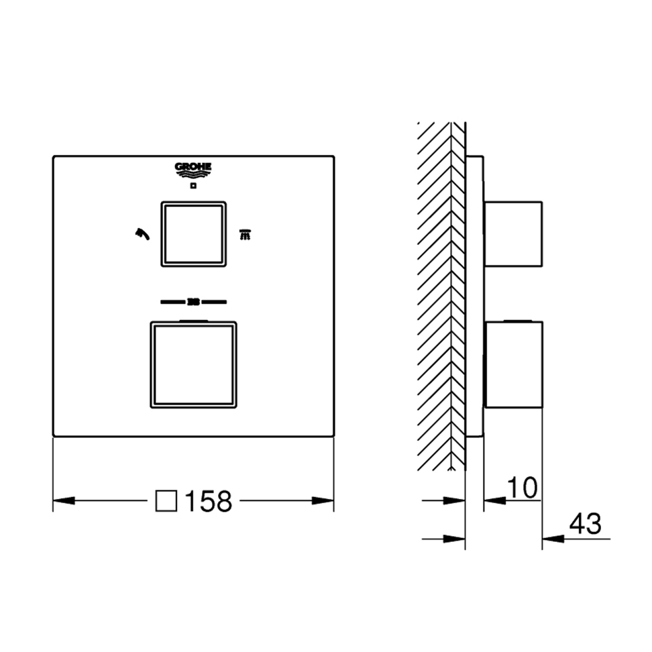 Baterie dus incastrata Grohtherm Cube termostatata cu doua iesiri crom lucios