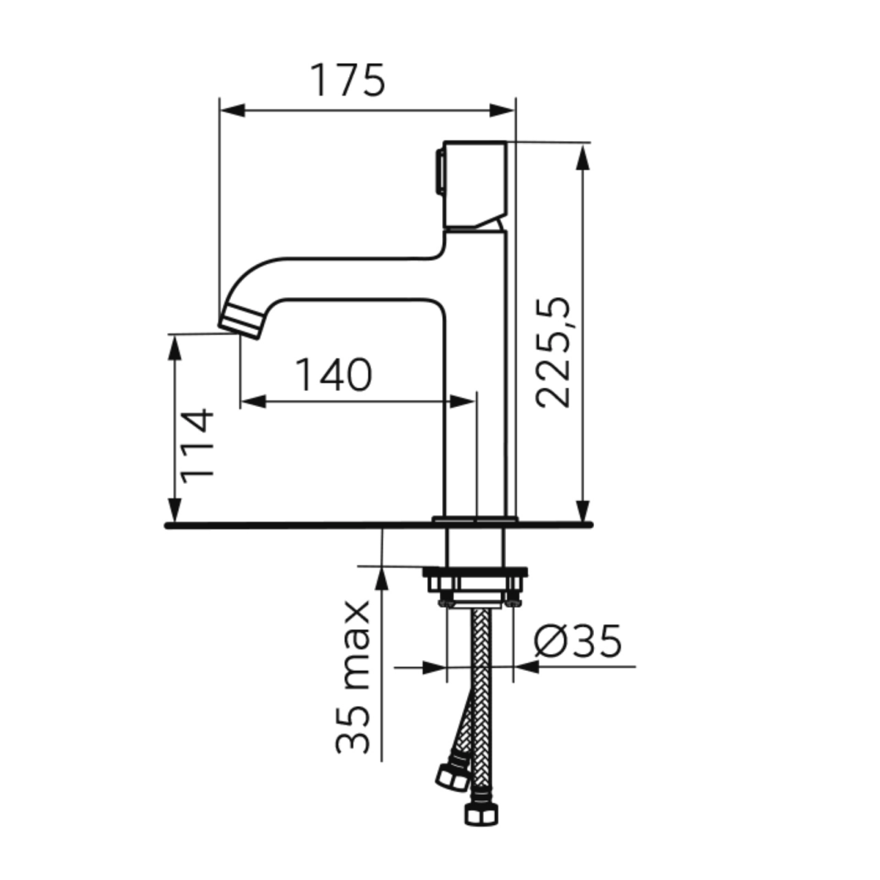 Lungimea furtunurilor de conectare este de 35 cm, facilitand o instalare rapida si simpla. Sifonele din polipropilena au fost inlocuite cu modele din alama, contribuind astfel la reducerea utilizarii plasticului. Finisajul cromat protejeaza bateria impotriva uzurii si factorilor externi.