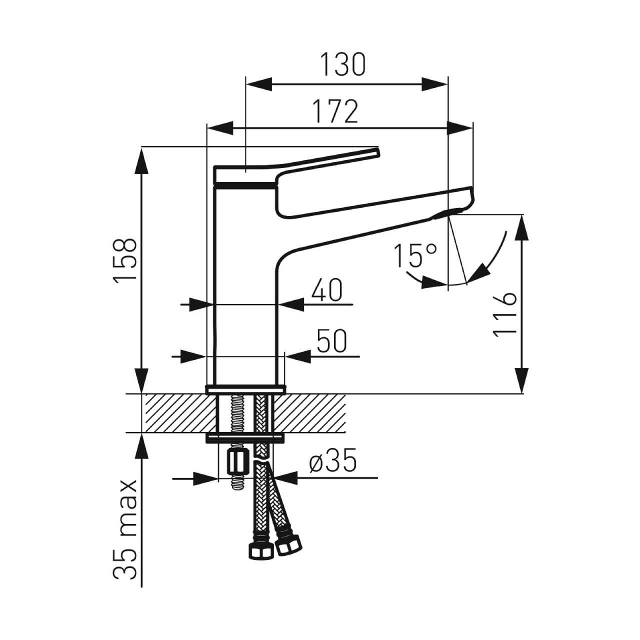 Produsul este echipat cu un ventil Click-Clack si un regulator de flux Coin Slot pentru un control optim al debitului de apa. Furtunurile de conectare au o lungime de 35 cm, iar sifonul este realizat din alama, reducand utilizarea plasticului. Ambalajul ecologic foloseste carton kraft si folie reciclata, minimizand impactul asupra mediului.