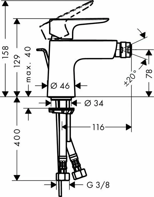 Bateria pentru bideu face parte din gama Hansgrohe colectia Talis cu montaj pe bideu. Este fabricata din alama sanitara cu finisaj bronz periat si compusa din: limitator de temperatura ajustabil, cartus ceramic, pipa cu proiectie de 116 mm, ventil metalic pop-up, perlator cu racord cu bila si conexiuni DN15. Bateriei pentru bideu ii sunt atribuite tehnologiile: AirPower care ofera un sistem inovativ de mixare a apei cu aerul oferind astfel o atingere fina, ComfortZone care ofera un spatiu si un confort in functie de inaltime si tehnologia QuickClean care ofera o curatare fina si eficienta a duzelor printr-o simpla frecare a duzelor elastice din silicon.