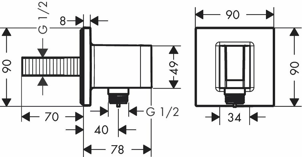 Accesoriu Hansgrohe e prevazut cu suport pentru dus, are forma patrata si finisaj crom. Carcasa este metalica cu alimentare interna din plastic. Este prevazuta cu valva antireflux si compatibila cu furtunurile cu cot de iesire conic.