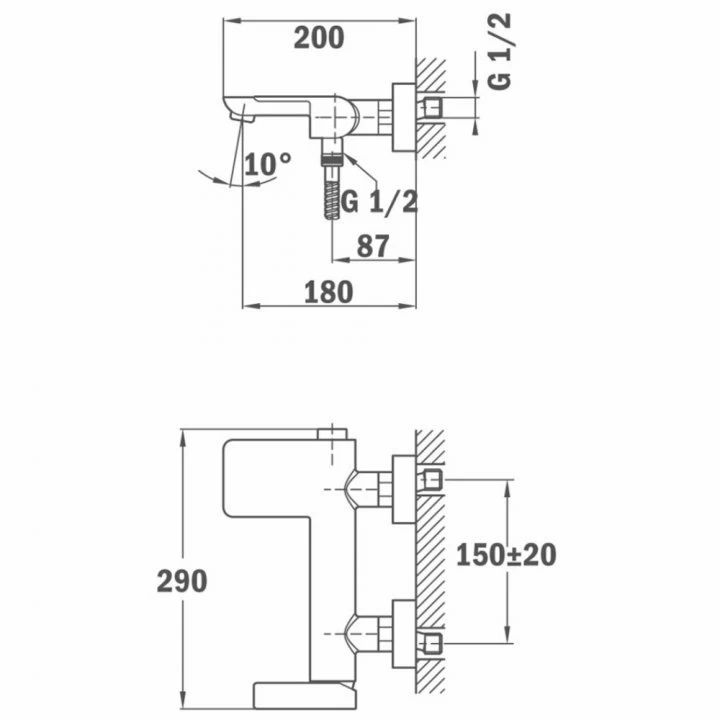 Baterie pentru cada si dus monocomanda, face parte din colectia Formentera. Fabricata din alama sanitara de culoare crom, cu lungimea corpului bateriei de 290 mm, este definita prin forma liniilor drepte, aceasta baterie se monteaza pe perete, are aerator special anticalcar, invertor lateral integrat si racorduri flexibile de 1/2. Prezinta protectie impotriva fluctuatiilor de presiune a apei excentrice mascate.