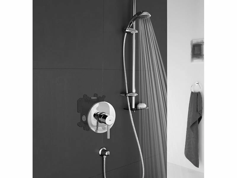 Bateria de dus face parte din gama Grohe colectia Essence cu montaj incastrat. Este fabricata din alama sanitara cu finisaj crom si compusa din: maner din metal, element de etanseizare masca aparenta si arbore. Bateriei pentru dus ii este atribuita tehnologia: StarLight prin care suprafata cu finisaj cromat ofera luciu superior pe termen indelungat, rezistenta la zgarieturi si permite curatarea usoara a acesteia și etanșare oferind astfel rezistenta la presiune. Presiunea minima recomandata de 1/0 bar si vine fara corp incastrat. Pentru un montaj complet se recomanda achizitionarea unui corp incastrat ( vezi produsele recomandate).