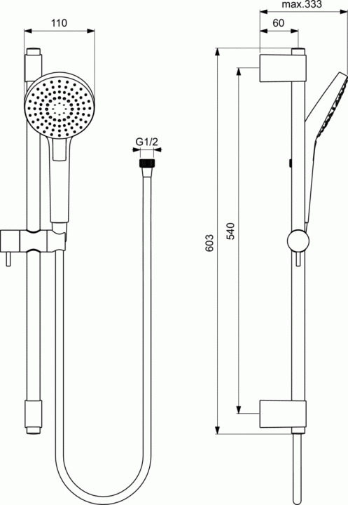 Set de dus Ideal Standard IdealRain Evo cu bara H60 cm