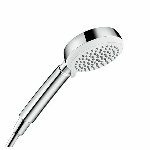 Setul pentru dus Hansgrohe colectia Crometta 100 Vario Porter, este de culoare alb-crom si este alcatuit din: para de dus mobila Crometta 100 Vario(cod: 26824400) cu diametru de 100 mm, un debit de 18l/min si 4 tipuri de jet : Rain, Normal, Shampoo si Massage. Reglarea tipului de jet de face prin rasucirea capului de dus. Setul mai are in componenta suportul pentru dus Porter S (cod:28331000) fabricat din material plastic, se fixeaza pe perete si are finisaj cromat si furtun dus Metaflex de 1250 mm(cod: 28262000). Beneficiaza de cele 2 tehnologii inovative: XXL Performance - distribuire uniforma a apei pe intreaga suprafata a corpului, QuickClean - depunerile de calcar sunt usor de indepartat prin simpla frecare a degetelor de jeturile flexibile de silicon.