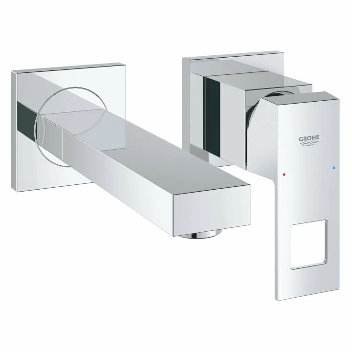 Bateria de lavoar Grohe, colectia Eurocube, prezinta 2 orificii, cu montare pe perete, setul pentru instalarea finala a codului, fara corp incastrat, ornament metalic, maner din metal, suprafata cromata GROHE StarLight, aerator reglabil GROHE AquaGuide, distanta intre axe 110 mm, proiectie de 171 mm si presiunea minima recomandata 1.0 bar.