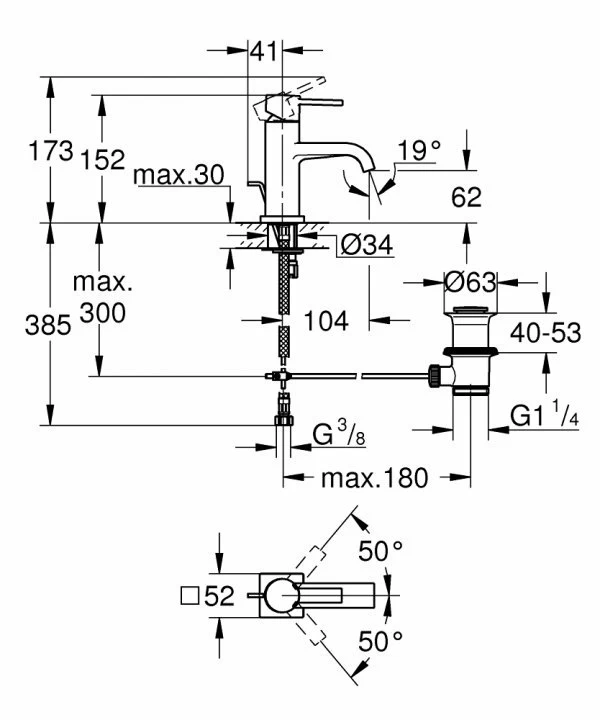 Baterie lavoar Grohe Allure monocomandă 1/2″ Mărimea M cu ventil