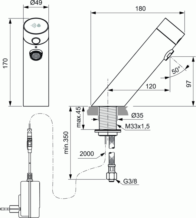Baterie lavoar Ideal Standard Sensorflow electronica (priza)