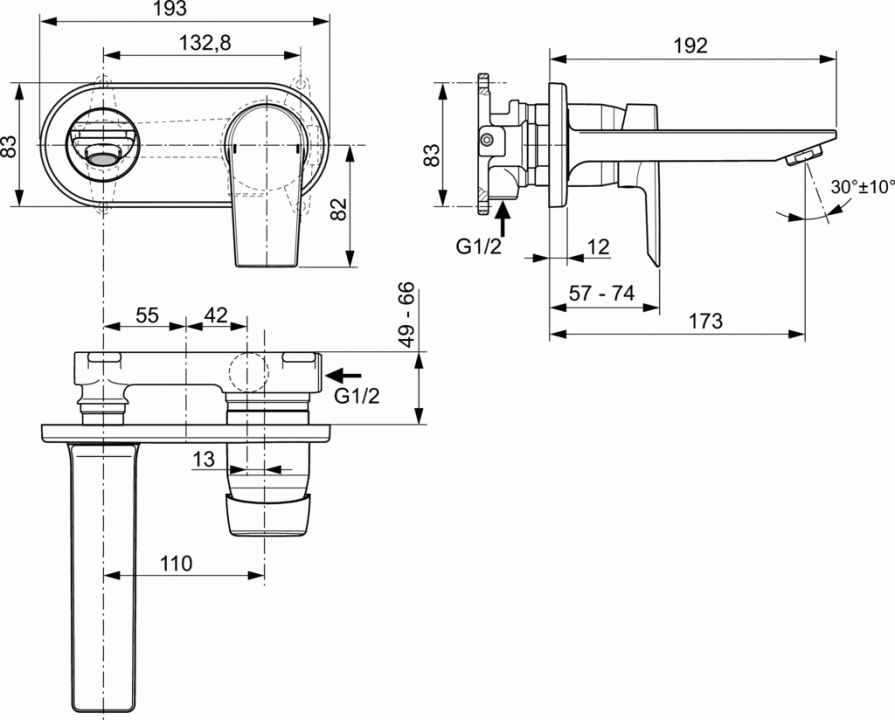 Baterie lavoar Ideal Standard Tesi monocomanda, incastrata