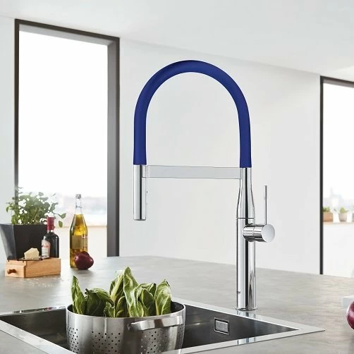 Pipa pentru baterie de bucatarie Grohe Essence fabricata din material siliconic care pivoteaza la 360° si este de culoare albastra. Este compatibila cu bateriile de bucatarie Grohe Essence (cod 30294000) si are setul de fixare inclus.
