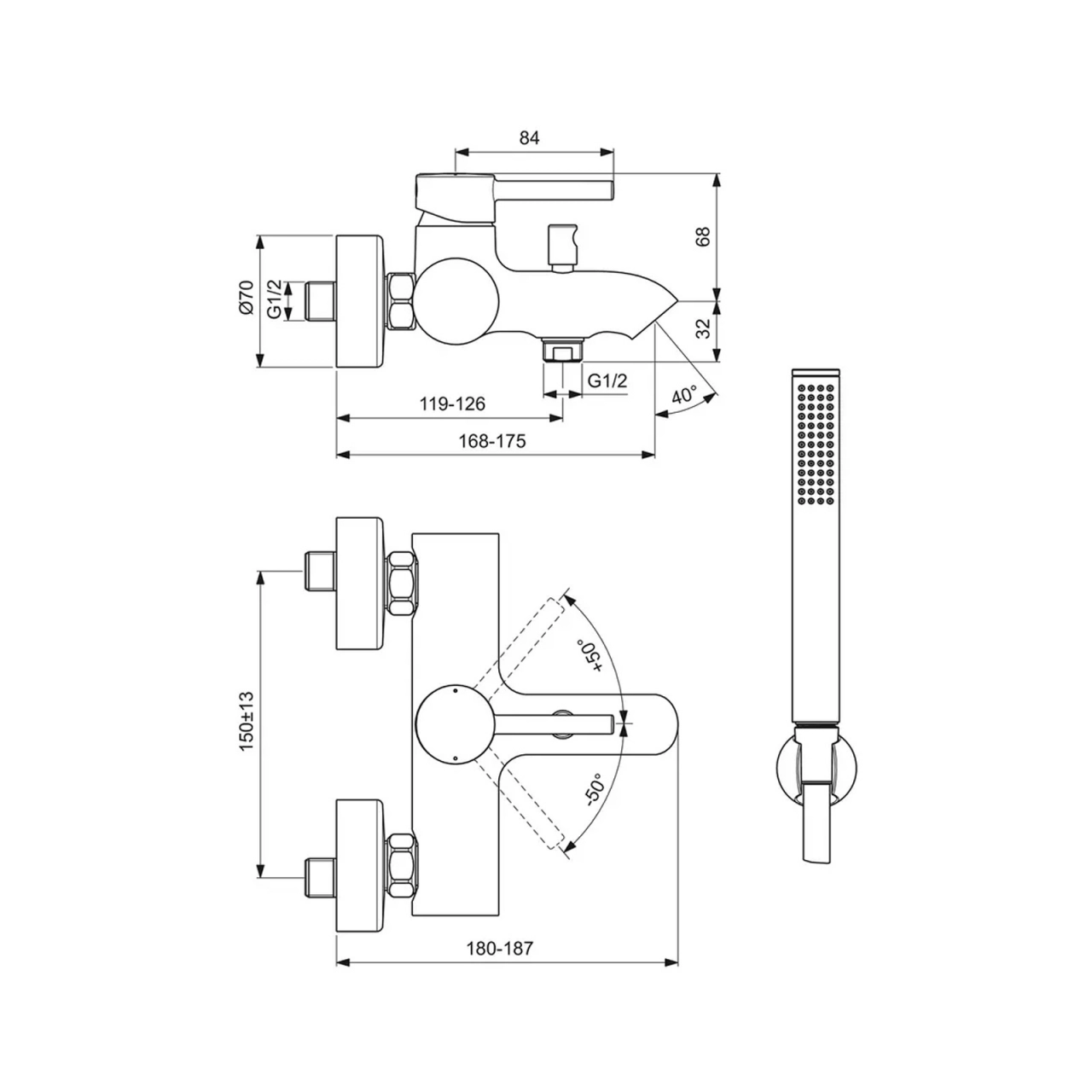 Bateria pentru cada si dus face parte din colectia Ceraline de la Ideal Standard si este destinata montajului pe perete. Este un model monocomanda, cu corp din alama sanitara si finisaj crom lucios. Include un cartus ceramic de 35 mm prevazut cu sistem de control al temperaturii apei calde. Manerul este metalic, cu indicator pentru apa rece si calda.