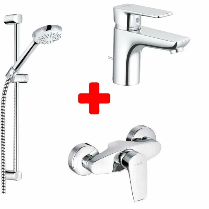 Set PROMO 3 in 1 Kludi Pure&Solid baterie de lavoar, baterie de dus si set de dus