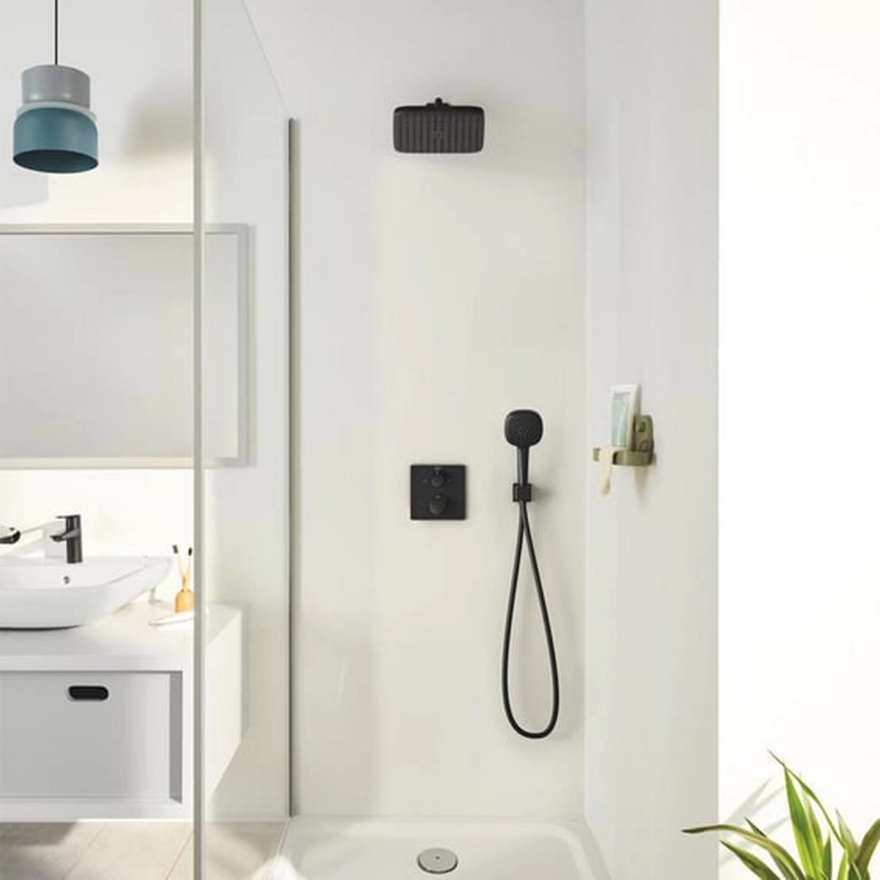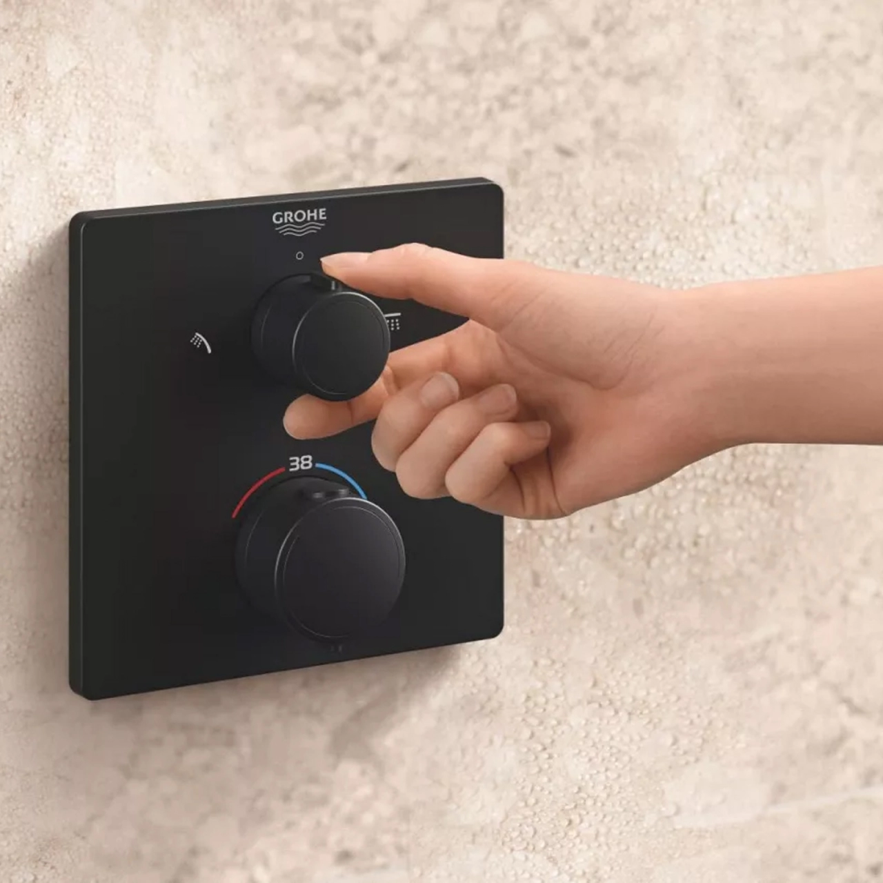 Sistemul de dus incastrat Grohe Precision Cube din colectia Precision Cube impresioneaza prin designul sau modern si elegant, cu un finisaj negru mat. Acesta este ideal pentru montaj in perete si include o baterie de dus termostatica cu doua iesiri, avand integrata o supapa de inchidere si directie.
