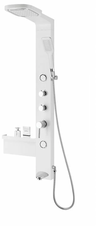 Panelul de dus cu hidromasaj Sanotechnik Ibiza are dimensiunea de 375x1357x520 mm si o culoare placuta alba mat. Materialul corpului este PVC argintiu impreuna cu doua duze de hidomasaj, etajera argintie, baterie cu comutator 5 functii de culoare crom, dispersor de dus fix cu cu jet tip cascada si jet ploaie, dispersorul de dus mobil 1 functie, suportul de dus crom, furtunul de dus cu dimensiunea de 1.5m si pipa de culoare crom, creeaza pachetul complet pentru a avea un design interior de neegalat.
