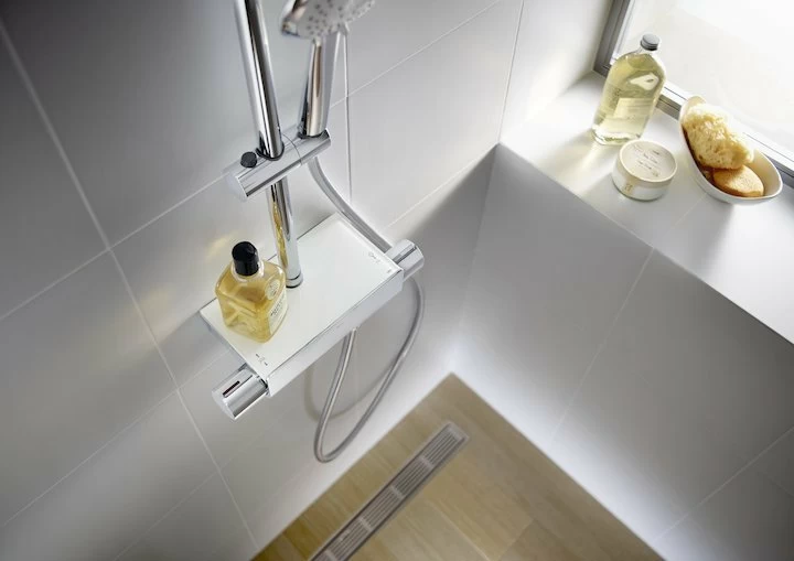 Sistem dus cu baterie termostatica Roca Deck-T Round cu polita