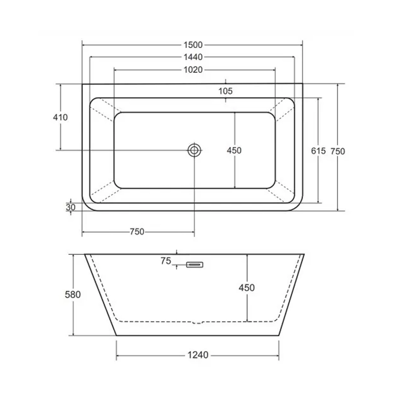 Cada freestanding Besco Varya din acril alb are dimensiuni de 1500 x 750 mm si se monteaza la perete. Este parte din colectia Varya si are un design modern, ce se potriveste oricarui tip de baie.