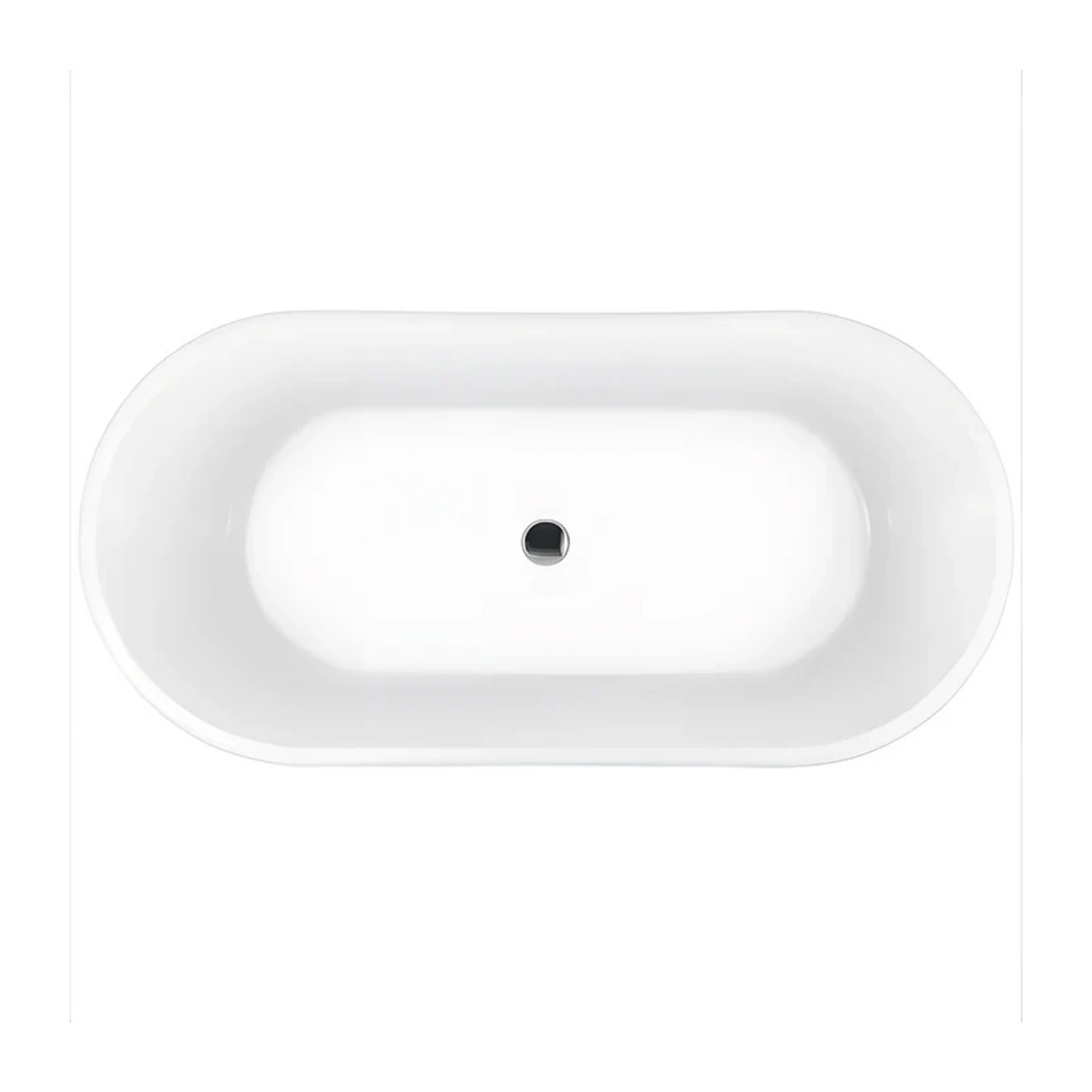 Designul simetric permite instalarea in centrul incaperii sau in apropierea unui perete, fara constrangeri de montaj. Orificiul de preaplin este integrat discret, contribuind la siguranta in utilizare, iar pozitionarea scurgerii in zona centrala asigura un drenaj uniform si eficient. Forma ovala ofera o structura compacta si stabila.