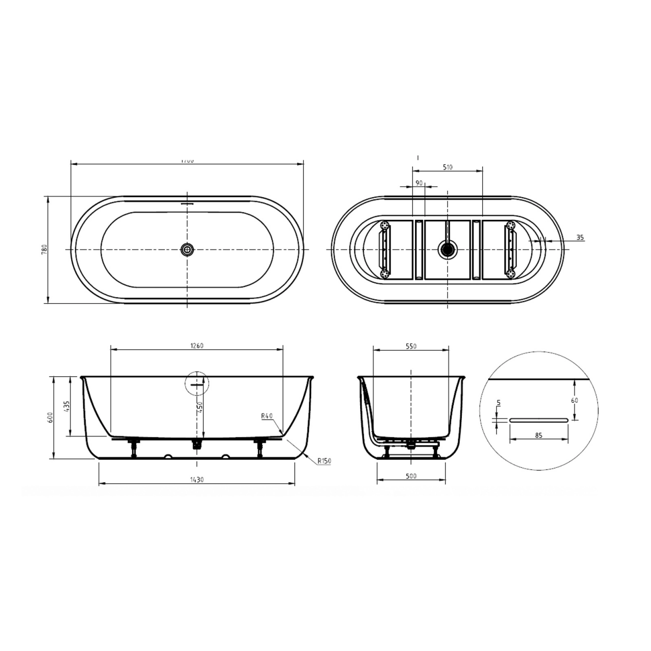 Cada freestanding Nirvana are dimensiunile 170x78 cm si este fabricata din acril sanitar de calitate superioara, cu finisaj alb-albastru. Dispune de orificiu preaplin pentru evitarea supraincarcarii si scurgere centrala, facilitand evacuarea eficienta a apei. Forma ovala asigura un design ergonomic care optimizeaza confortul in utilizare.
