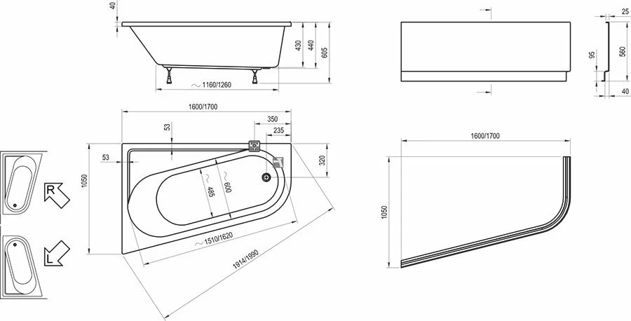 Cada asimetrica Ravak Chrome 170x105xH44 cm, dreapta