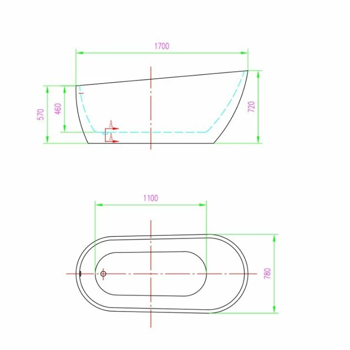 Cada freestanding Florida Natalia New 170x78xH72 cm cu ventil click-clack cu preaplin
