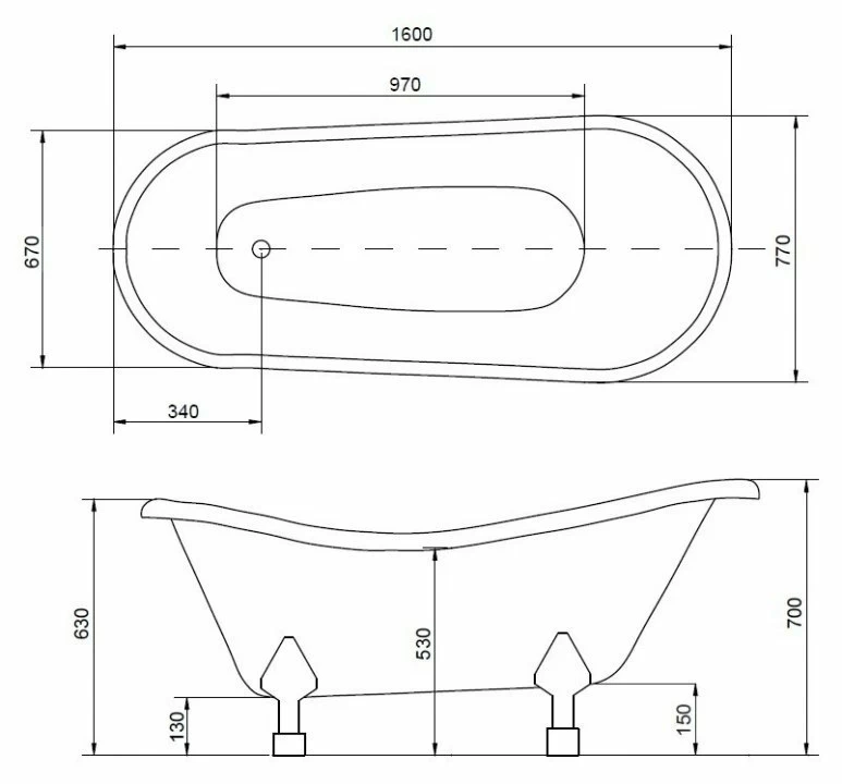 Cada freestanding din material acrilic de inalta calitate de culoare alb,1600 x 770 x H700 mm si capacitate maxima de 180 litri. Cada este tratata cu un strat protector, antibacterian si nu este prevazuta cu orificiu pentu preaplin, dar are picioare cu finisaj din crom.