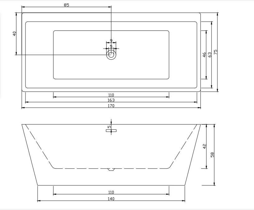 Cada de baie de dimensiunile 170 x 75 x 59,2 cm, fabricata din acril sanitar de culoare alb, cu grosime de 4 mm si rasina startificata cu grosimea de 8 mm ceea ce formeaza o structura compacta fara suduri, avand grosimea totala de 12 mm. Prevazuta cu picioare din otel inoxidabil si scurgere pe mijloc, cada Style este un produs cu certificat ROHS si CE, beneficiind de o garantie de 10 ani. Recomandam achizitionarea impreuna cu baterie cu montaj pe cada sau baterie de tip coloana (vezi produsele recomandate ale acestui produs). In cazul bateriei cu montaj pe cada, aceasta se poate gauri de catre furnizor. Se livreaza in ambalaj individual din carton multistratificat plus cadru din lemn.
