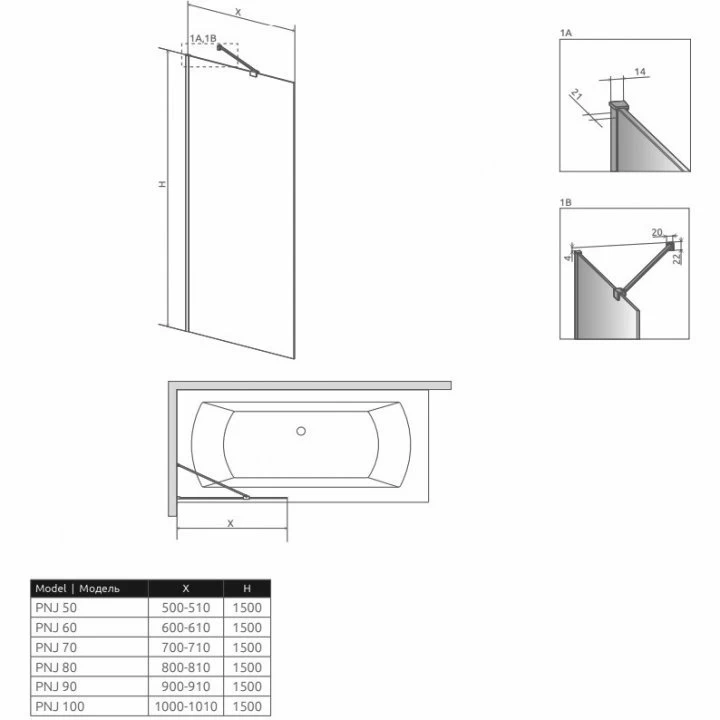 Paravanul pentru cada Radaway, face parte din colectia Modo New PNJ ce are un montaj fix. Paravanul este dintr-o bucata, are latimea de 900 mm, inaltimea de 1500 mm, profil de culoare negru mat iar sticla este transparenta. Aceasta are o grosime de 8 mm si o acoperire cu un strat EasyClean de protectie cu proprietati hidrofuge care mentine curata suprafata si permite intretinerea usoara a acesteia. Profilul compensator se poate regla intre 900-910mm.