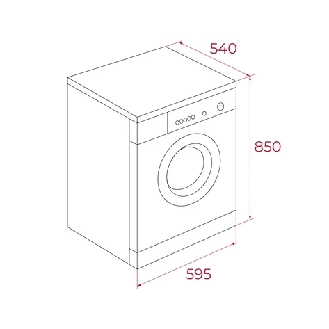 Aparatul se încadrează în clasa energetică A și este conceput pentru o instalare liberă, având dimensiuni standard (850 × 595 × 599 mm) care îi permit integrarea facilă în orice spațiu dedicat. Cu o greutate de 65 kg și picioare reglabile atât în față, cât și în spate, mașina oferă o stabilitate excelentă în timpul funcționării.
