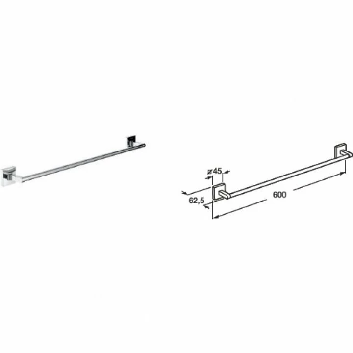 Suportul pentru prosop face parte din gama Roca, colectia Cubica cu montaj pe perete, fabricat din metal cu suprafata de culoare crom si are dimensiunile de 600 mm.