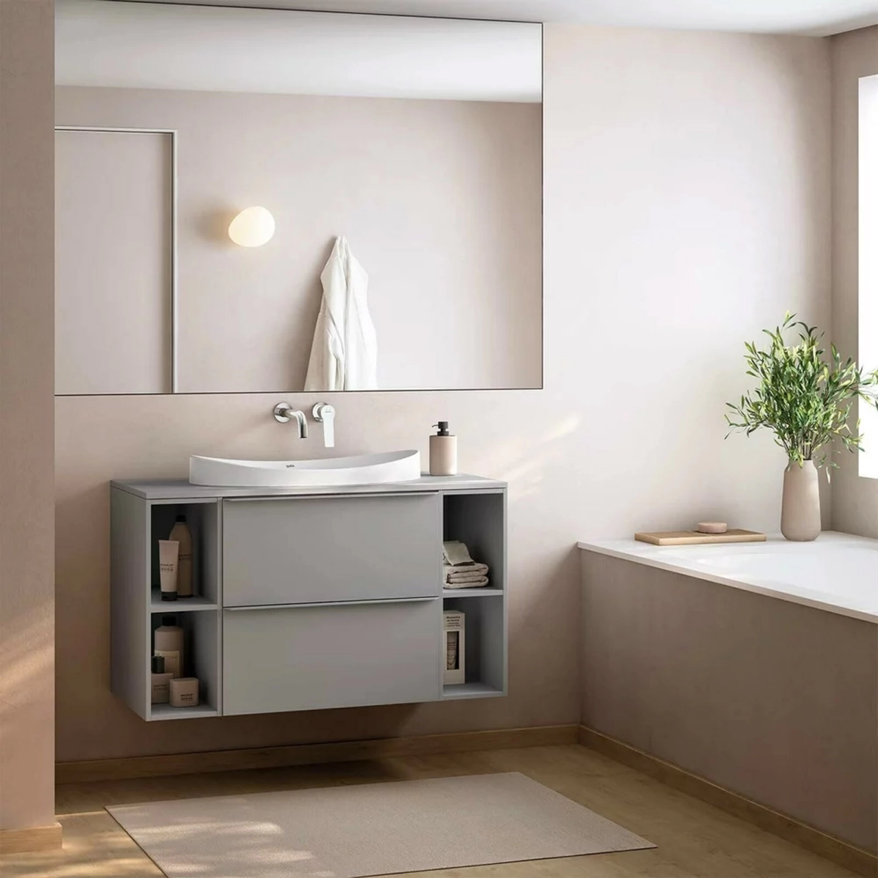 Daca vrei sa transformi baia intr-un spatiu modern si functional, blatul de mobilier Gala Shona 80x45.5 cm in gri mat este alegerea perfecta. Pretul include doar blatul. Celelalte produse din imagini se comanda separat.
