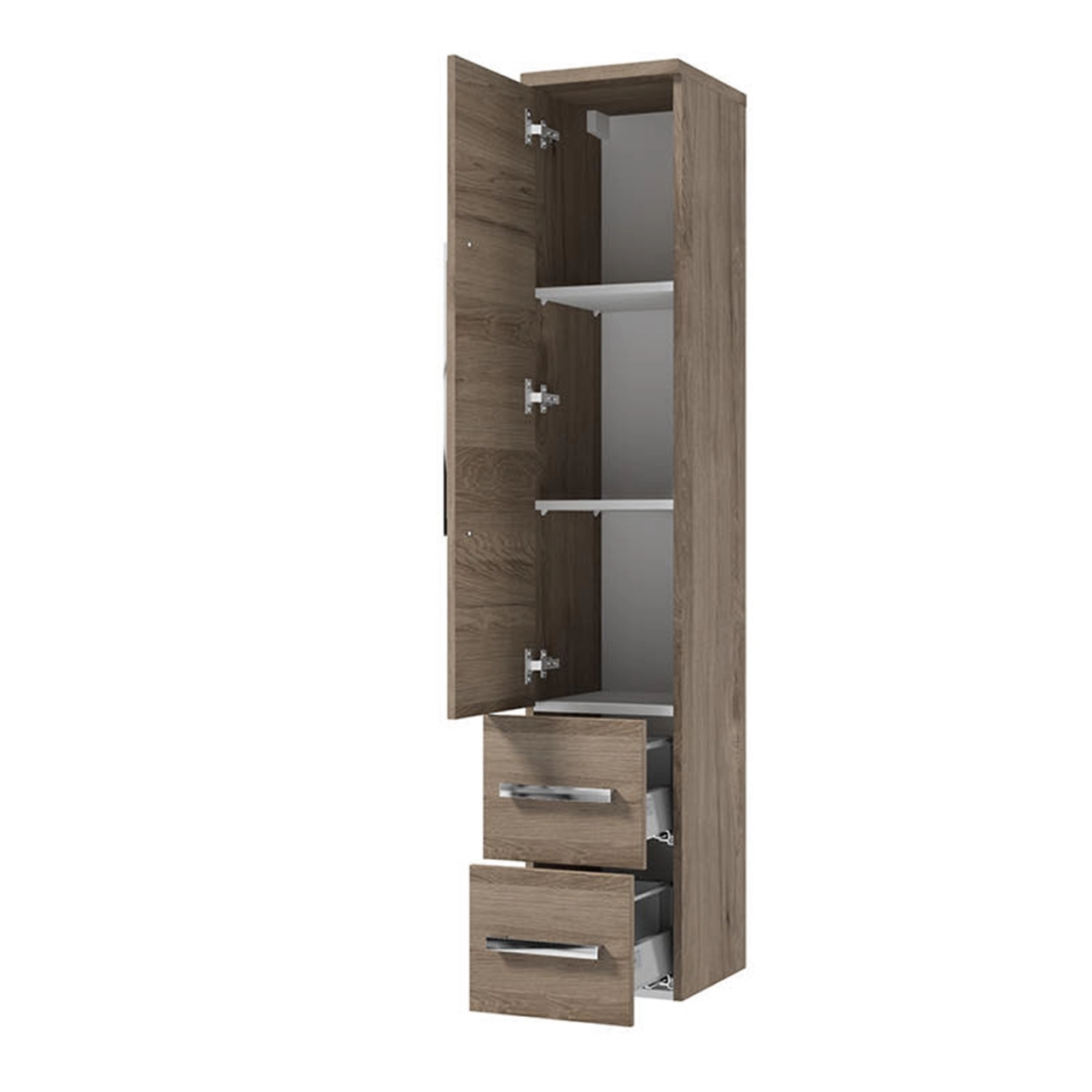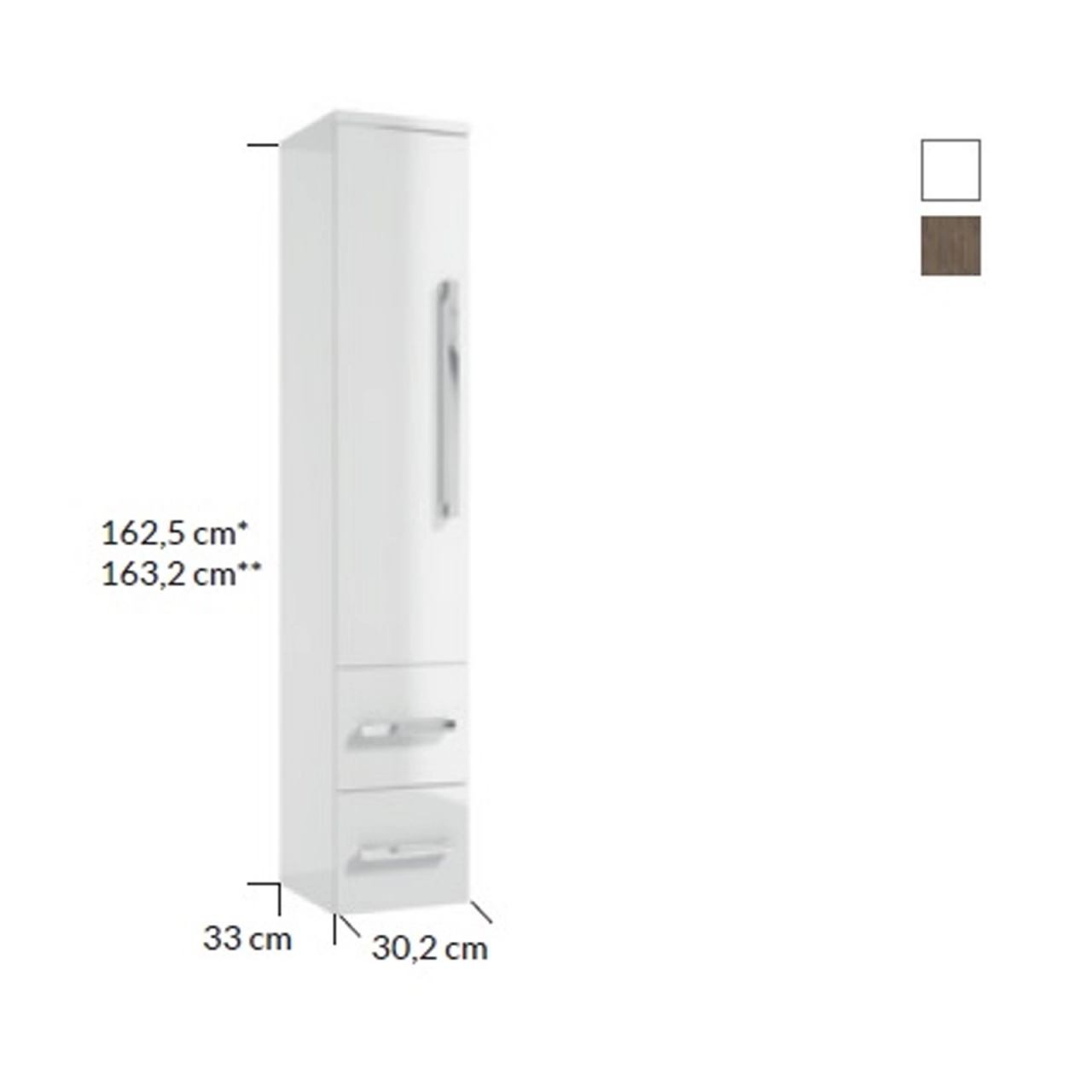 Cu o inaltime impunatoare de 163.2 cm, o lungime de 30.2 cm si adancime de 33 cm, acest dulap ofera suficient spatiu pentru a-ti pastra produsele de igiena si cosmeticele organizate. Cu o usa si doua sertare prevazute cu sistemul de inchidere lenta DefraSoftClose, vei beneficia de o experienta de utilizare fara zgomot si de durabilitate crescuta.