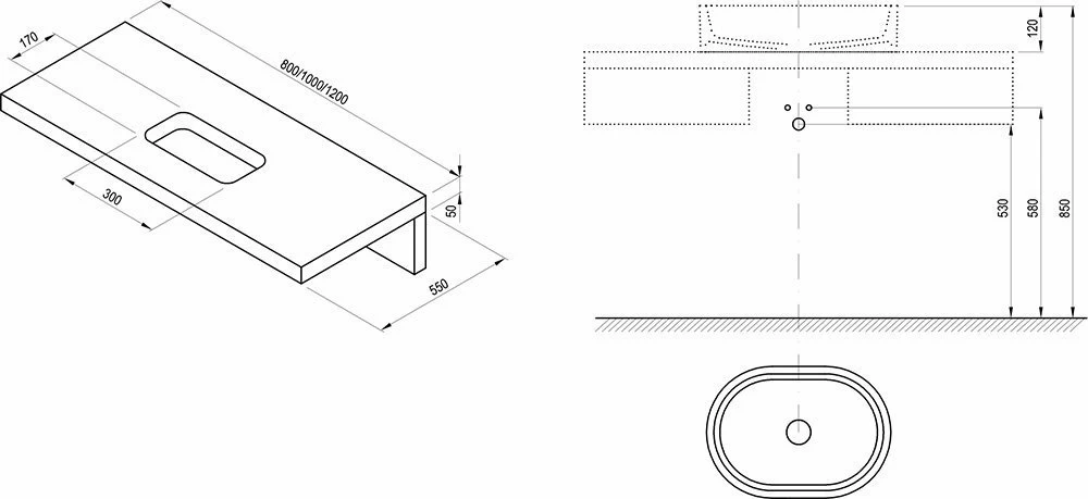 Blatul, cu forma exceptional proiectata, este profund impregnat impotriva umezelii, ofera trei variante de culoare, design si o suprafata mare de depozitare. Blaturile pentru lavoar sunt profund impregnate pentru a rezista in mediile umede. Lacuirea se bazeaza pe tehnologia auto, prin urmare este deosebit de rezistenta. Blatul este realizat din MDF impregnat si furnir,prezinta orificiu pentru montarea lavoarului, iar consolele sunt incluse in pachet. Dimensiunile acestuia sunt de 1000x550x50 mm.