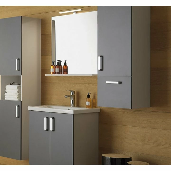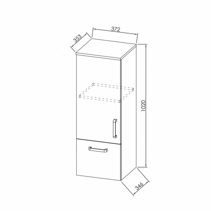 Dulapul inalt din gama Kolpasan, colectia Evelin, se monteaza suspendat, prezinta 2 usi cu maner cromat, este realizat din material front: MDF , materialul corpului este PAL special acoperit cu folie, are culoarea gri, si are urmatoarele dimensiuni : 370 x 346 x H1020 mm. Avantajele MDF-ului sunt urmatoarele : rezistenta mult mai mare la umezeala, permite frezare pe suprafata placii astfel obtinand forme deosebite ale fronturilor; la mobilierul de baie, unde este foarte mare umezeala, este indicat sa folosim suprafete vopsite care sunt cele mai rezistente. Cum palul nu poate fi vopsit, folosirea MDF-ului este cea mai indicata. Colectia Pandora se caracterizeaza prin armonia liniilor uniforme, moi, imbinate intr-un stil contemporan.