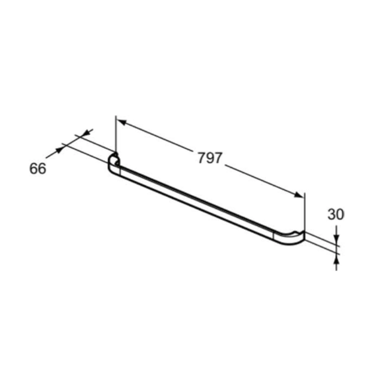 Cu o lungime impunatoare de 79.7 cm si dimensiuni de 4.8x3 cm (latime x inaltime), acest maner nu numai ca adauga un element decorativ in baie, dar poate fi folosit si ca o bara port-prosop. Finisajul lucios in alb confera un aspect elegant si curat, completand orice design de baie.