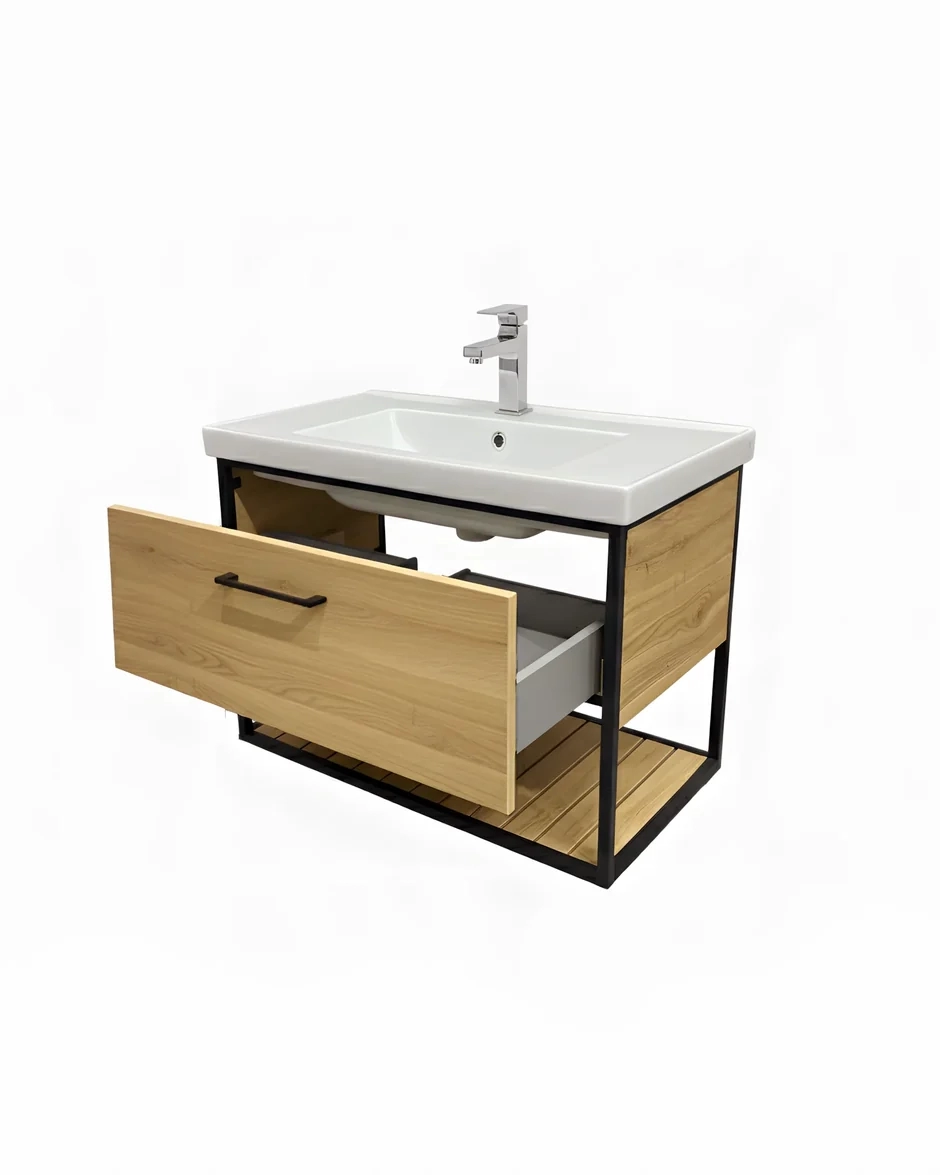 Mobilier baie suspendat Loft Scandi, cu blat si lavoar ceramic, 85 cm