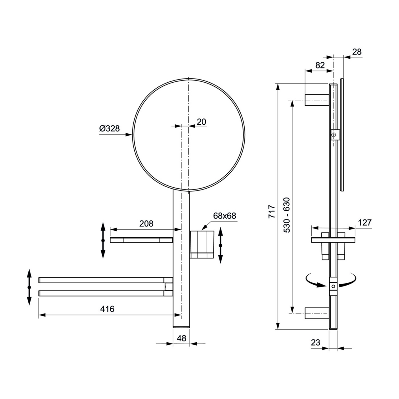 Suportul pentru periute de dinti adauga o nota de organizare, iar bara dubla pentru prosoape, pivotanta la 90°, este versatila. Bara de 700 mm are un profil dreapta si stanga, permitandu-ti sa pozitionezi accesoriile la alegere, pentru a se potrivi perfect necesitatilor tale.