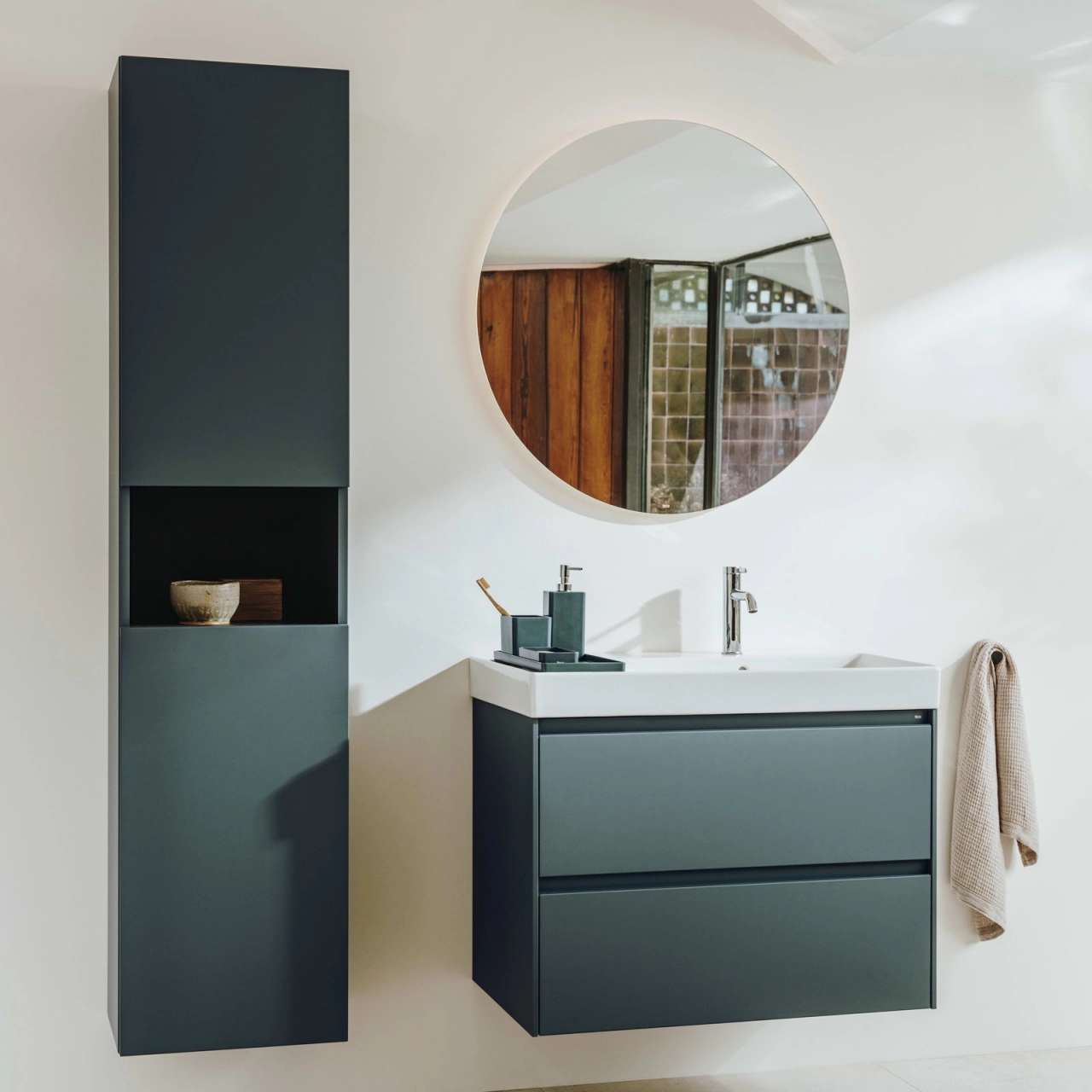 Recipientul pentru accesorii de baie Roca Ona in verde mat aduce o nota de naturalete si functionalitate in spatiul tau de baie. Produs de reputatul producator Roca, acest recipient face parte din colectia Ona, inspirata de formele diverse ale naturii din Marea Mediterana. Cu o culoare verde inchis (Highland Green) si un finisaj mat, acest recipient se integreaza perfect intr-un design de baie contemporan.