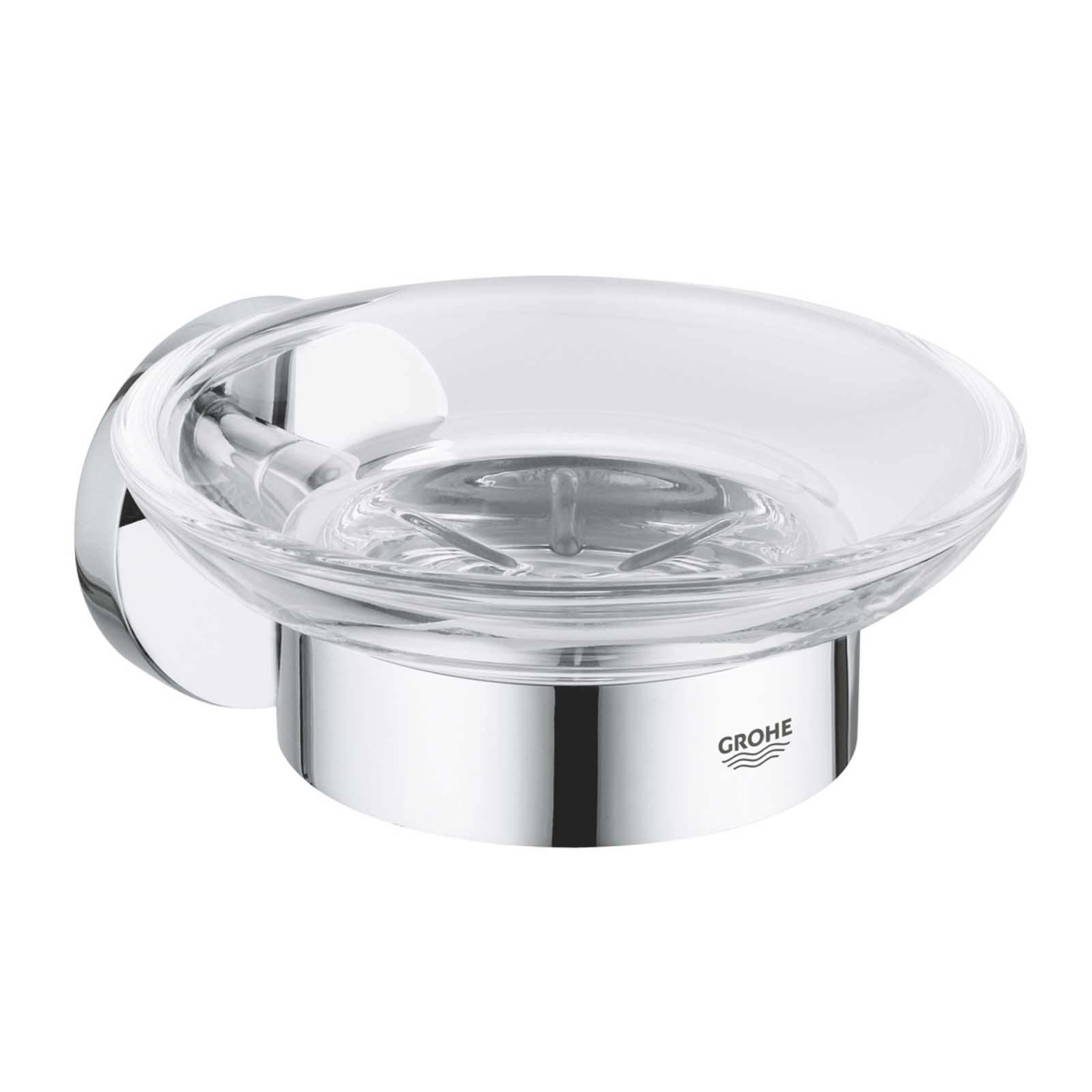 Savoniera din sticla Grohe Essentials cu suport crom lucios