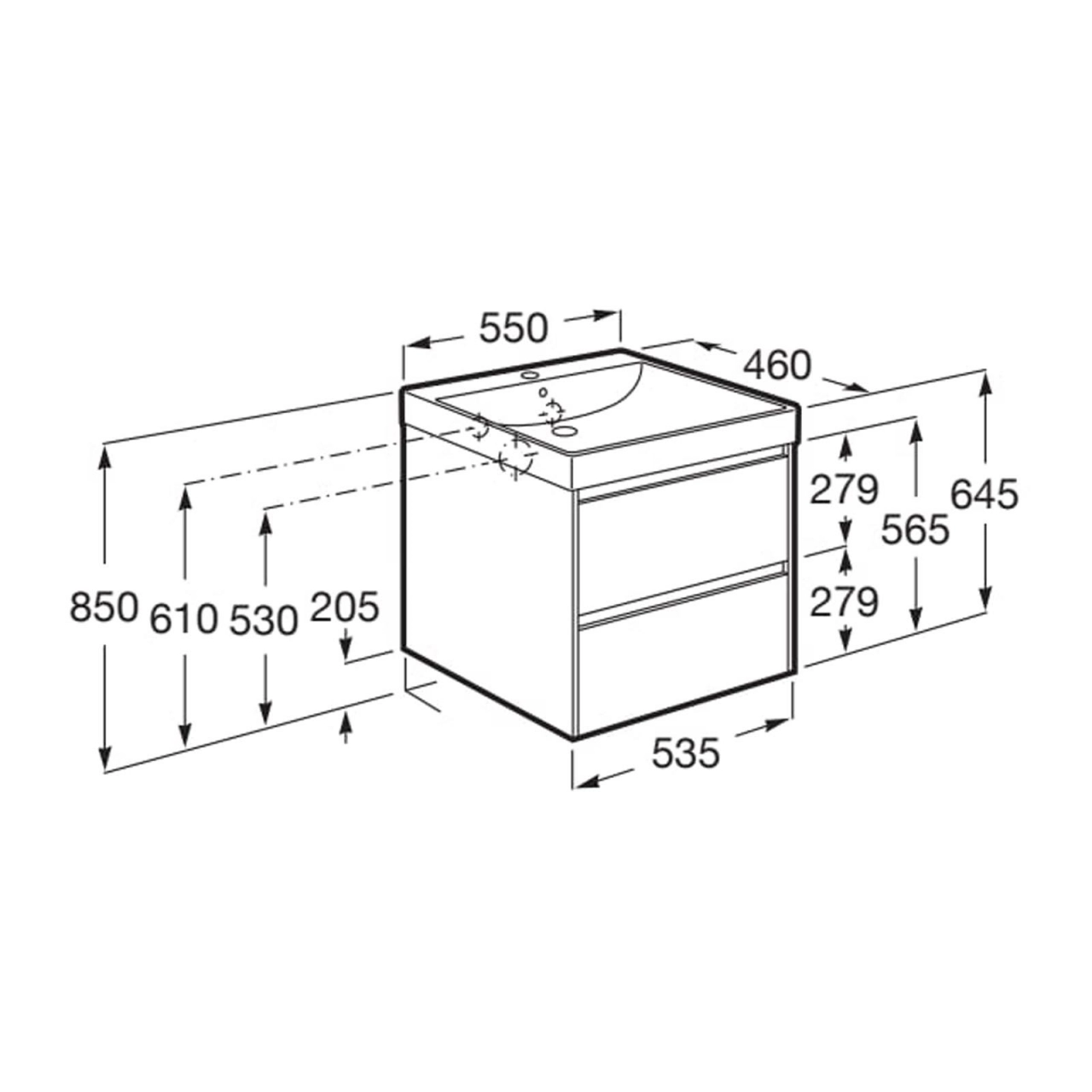Set PROMO mobilier baza si lavoar Roca Ona Unik 2 sertare 55x46 cm ulm inchis