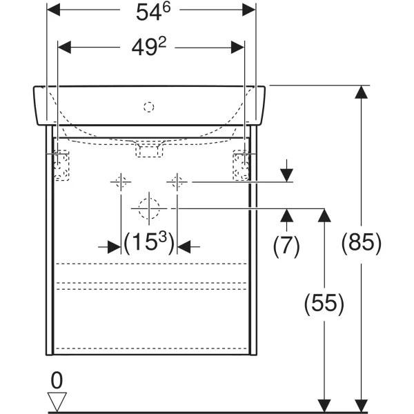 Lavoarul are o latime de 60 cm si este prevazut cu un orificiu de robinet pozitionat centrat si un sistem de preaplin vizibil, dispus simetric. Din punct de vedere al organizarii interne, unitatea include un raft cu pozitie modificabila, oferind flexibilitate in depozitare. Produsul este realizat din lemn provenit din silvicultura sustenabila cu origine certificata si este livrat complet asamblat. Ansamblul este compatibil cu accesorii optionale precum suportul magnetic Geberit sau setul de picioare ingust (se vand separat).