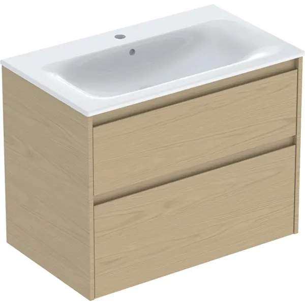 Set lavoar si mobilier Geberit Selnova Square cu doua sertare, 80x48x62 cm, stejar natural