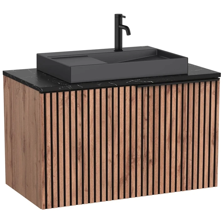 Set mobilier baie cu riflaj Roca Horizon 91x50xH56 cm, bej/negru