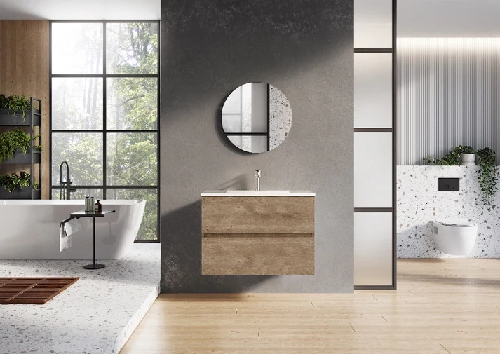 Set mobilier baie Roca Cube Unik 80 cm, stejar