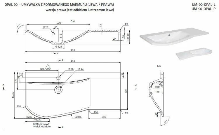 Material: Marmura compozita, PAL, MDF