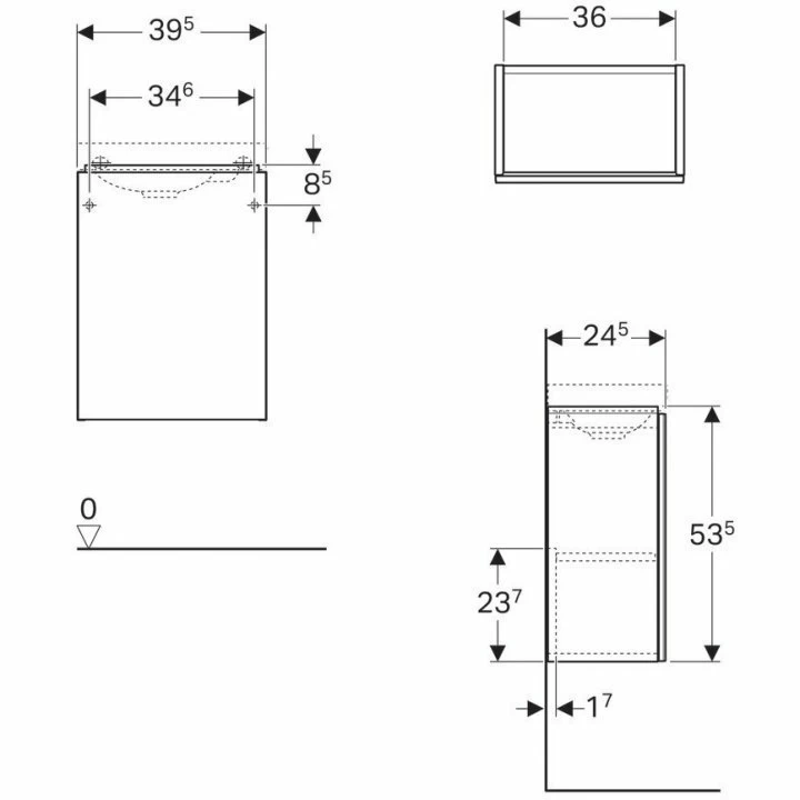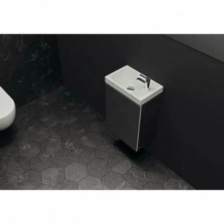 Setul contine mobilierul pentru lavoar din gama Geberit, colectia Acanto, care este realizat din lemn tristratificat, prezinta o usa de sticla lucioasa si sifon, se monteaza suspendat, are culoarea negru si are urmatoarele dimensiuni : 395x245xH535 mm. Lavoarul din argila refractara fina din gama Geberit, colectia Acanto este de culoare alb si are urmatoarele dimensiuni: 400x250xH250 mm, prezinta orificiu de robinet pe partea dreapta si nu prezinta preaplin. Lavoarul este asimetric si se monteaza incastrat. Seria completa de produse de baie Geberit Acanto imbina designul clar cu formele organice si solutiile inteligente de design, care acopera o gama larga de nevoi si cerinte de proiectare. Acanto este la fel de versatil si de modular, pe cat este de individual stilul dumneavoastra de viata. A se achizitiona impreuna cu unul dintre produsele recomandate in sectiunea produselor complementare.