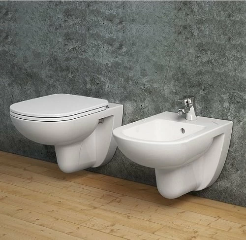 Bideu cu montare pe perete face parte din colectia Tempo, acesta este confectionat din ceramica. Este prevazut cu preaplin si un orificiu pentru baterie, iar dimensiunile sunt 360x530xH350 mm. Are kit-ul de fixare inclus acesta fiind complet ascuns.