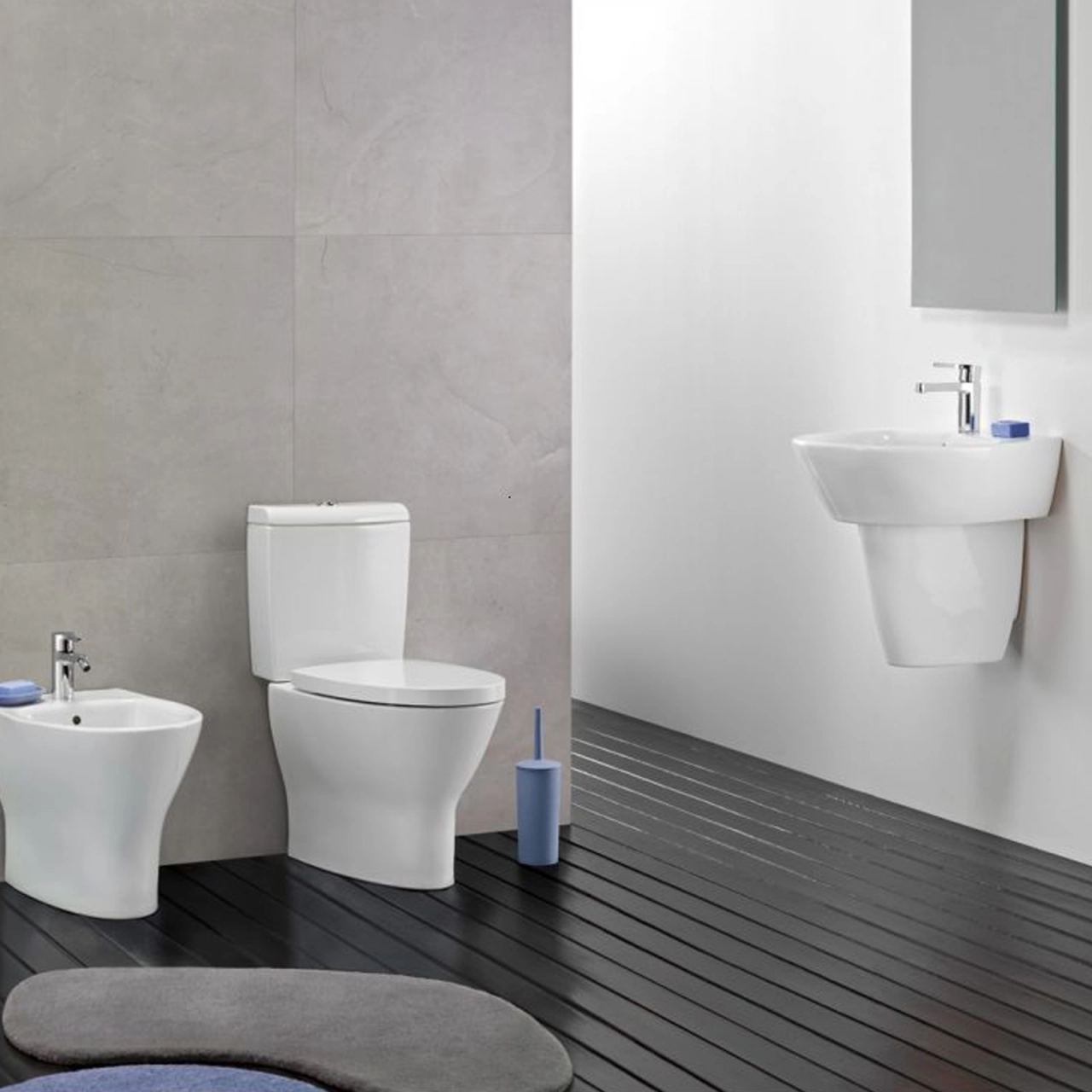 Obiectele sanitare marca Gala pot fi folosite pentru echiparea oricarui tip de baie. Cu picior, suspendate, sau free standing, produsele de echipare a baii de la producatorul spaniol propun zeci de stiluri si moduri de combinare.