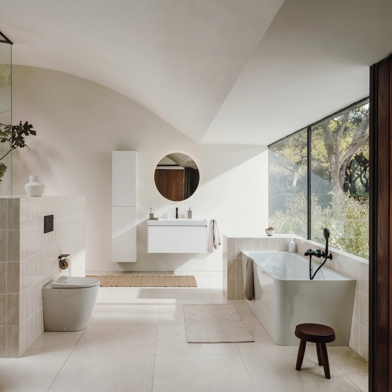 Fineceramic®, compus din 100% ceramic, confera lavoarului o usurinta cu 40% mai mare si o rezistenta cu 30% mai sporita, oferind un echilibru perfect intre durabilitate si estetica. Cu finisajul alb mat, acest lavoar emana o simplitate eleganta, in timp ce politele laterale adauga o nota practica pentru depozitare.